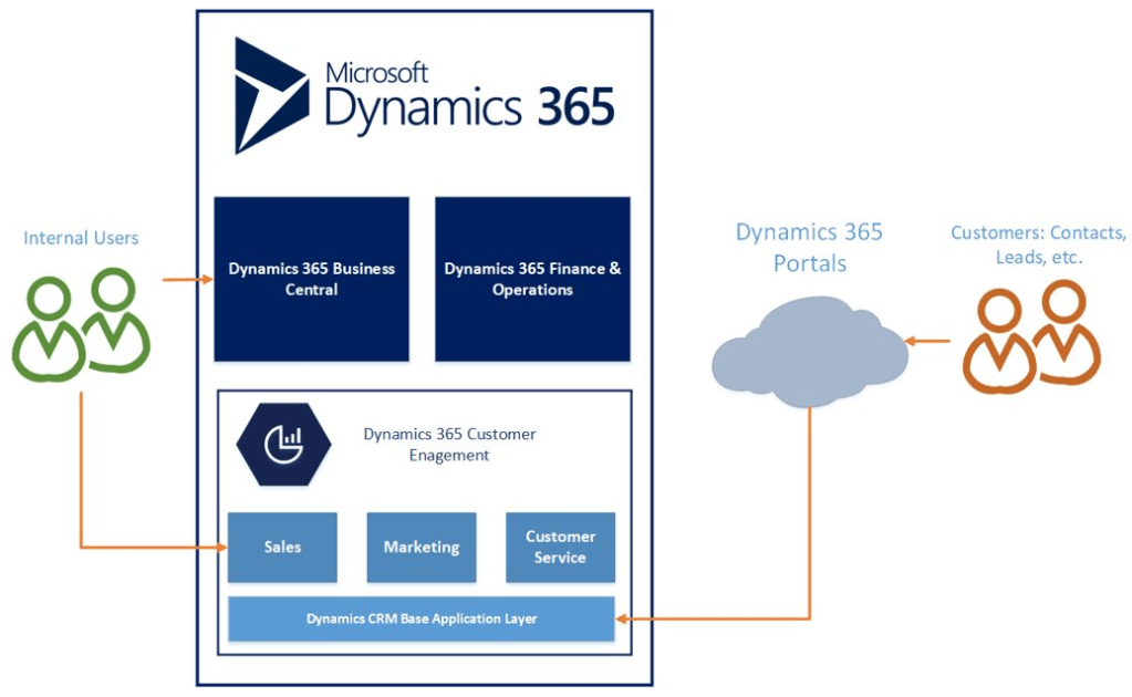 So where does the portal come into play? Essentially, it’s the customer-facing portion of your customer engagement solution. Basically, if you are a business, and you have customers, you need a portal of some kind, and if you have a Dynamics 365 CE implementation, the Dynamics Portal makes a pretty good use case to fill this role. External users interact with your Portal which in turn interfaces with D365 CE.