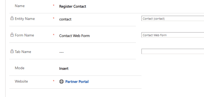 - Form Name: “Contact Web Form” if this form exists, can be used, or you can create a custom form for use with this entity form.